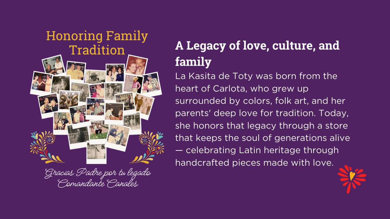 La Kasita DToty is Carlota’s way of honoring her family’s legacy, passing on the values of authenticity, artistry, and love for their heritage. Every item in the store reflects this family tradition, offering a meaningful connection to Latin American culture that’s woven through generations.