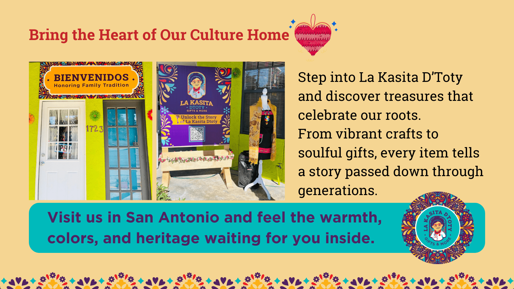 Visit us in San Antonio and discover the secrets of La Kasita de Toty, handmade gifts, living culture, and a legacy that inspires.